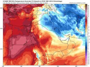 انتظار داریم طی روزهای آینده با افزایش ملایم دما همراه باشیم ولی مجدداً از اوایل تا اواسط هفته آینده با ریزش سرمای هوا به منطقه شاهد کاهش محسوس دما خواهیم بود چیزی که مشخص است این است که دماهای پیش بینی شده برای ادامه اسفند ماه نیز به نظر کمتر از حالت نرمال سالانه خود خواهد بود.